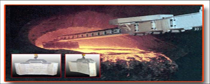 The electric arc furnace for steelworks is a piece of equipment capable of reaching 3,800°C: its vault, where the graphite electrodes are located, has to withstand significant thermal shocks. Refractory masses, EBT filling sand, precast shapes…: Insertec has developed a range of solutions specially designed for the lining of EAF.