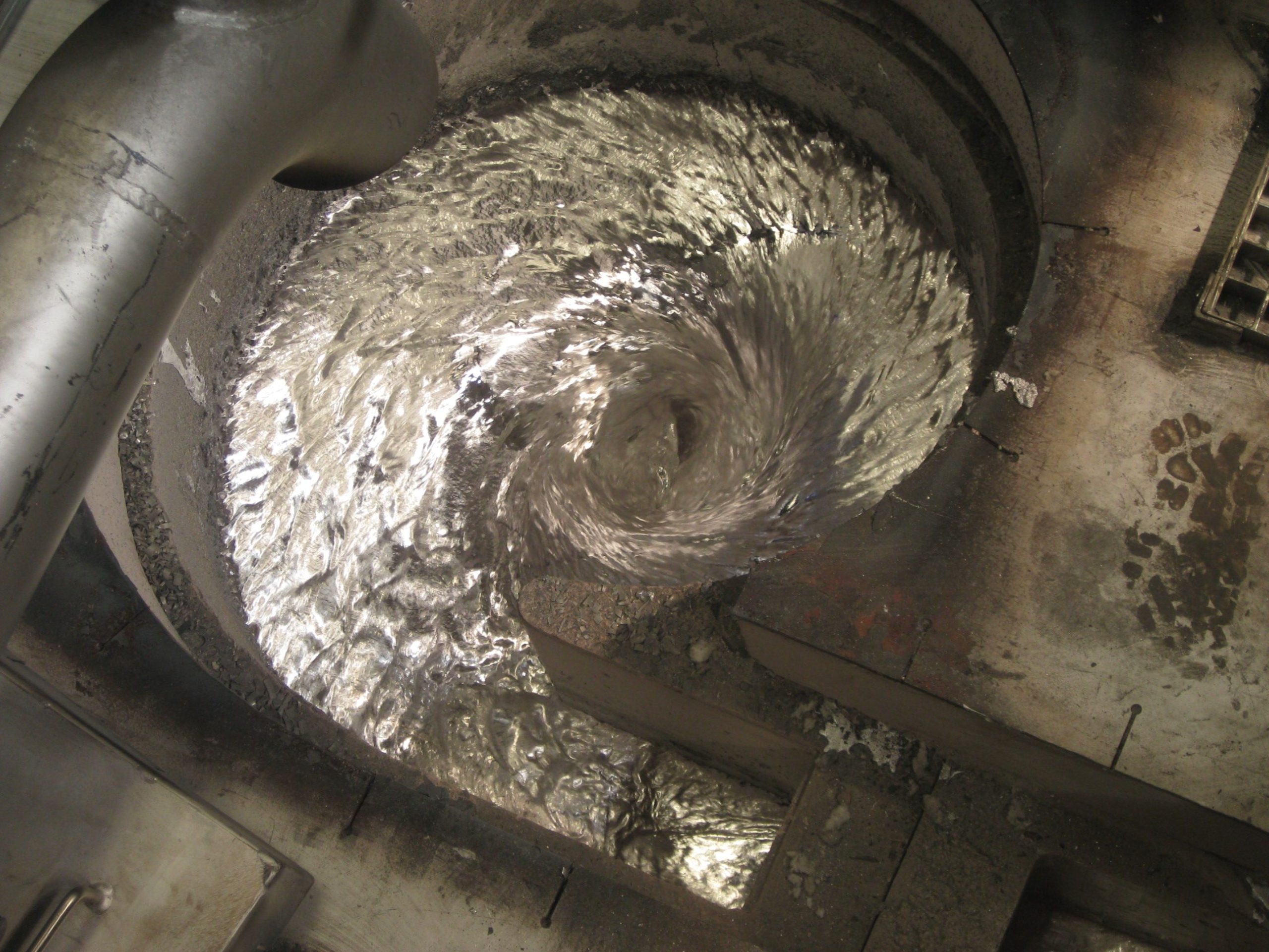 ALUSWIRLER® process for continuous aluminium scrap melting. Consist in melting the shredded scraps by immersion in a molten metal flow.